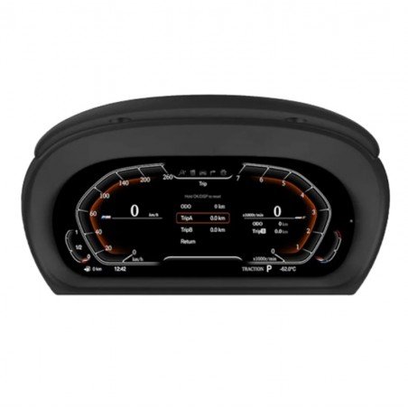 Mantiene todas las funcionalidades del cuadro analógico original, no solo la velocidad y revoluciones, sino la información original, nivel de combustible, consumos, alertas de seguridad, y un largo etc.
