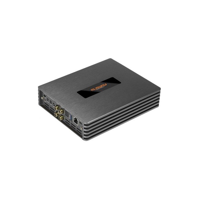 La pieza central es el chip DSP de última generación ADAU1452 de Analog Devices, que fue ajustado por los ingenieros de Musway y no deja sin cumplir los deseos de los audiófilos. El amplificador encuentra su conexión a través de un mazo de cables que ahorra espacio con enchufes ISO, también están disponibles juegos de cables individuales Plug + Play. Entre las funciones adicionales útiles se incluyen el recorte suave para proteger la electrónica y los altavoces en el funcionamiento de 2 Ω y la entrada de alto nivel recientemente desarrollada con sistema de protección contra errores. Cuando se conecta a una radio de fábrica OEM, el sistema de protección contra errores garantiza que ninguna función se vea afectada o mensajes de error