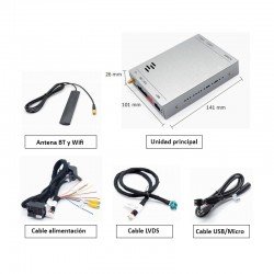 https://www.apple.com/es/ios/carplay/ Características del producto Cable Plug & Play por LVDS Entrada cámara delantera Entrada de cámara trasera con PAS (líneas de guía dinámicas) Conmutación automática de la cámara trasera Entrada USB para Carplay y Android Auto Función Mirrorlink CarPlay Wireless Sistema navegaciónSMEG Touch Screen System y Connect Nav Touch Navigation.