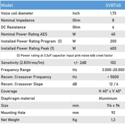 Diámetro de Bobina de Voz: 1,75"